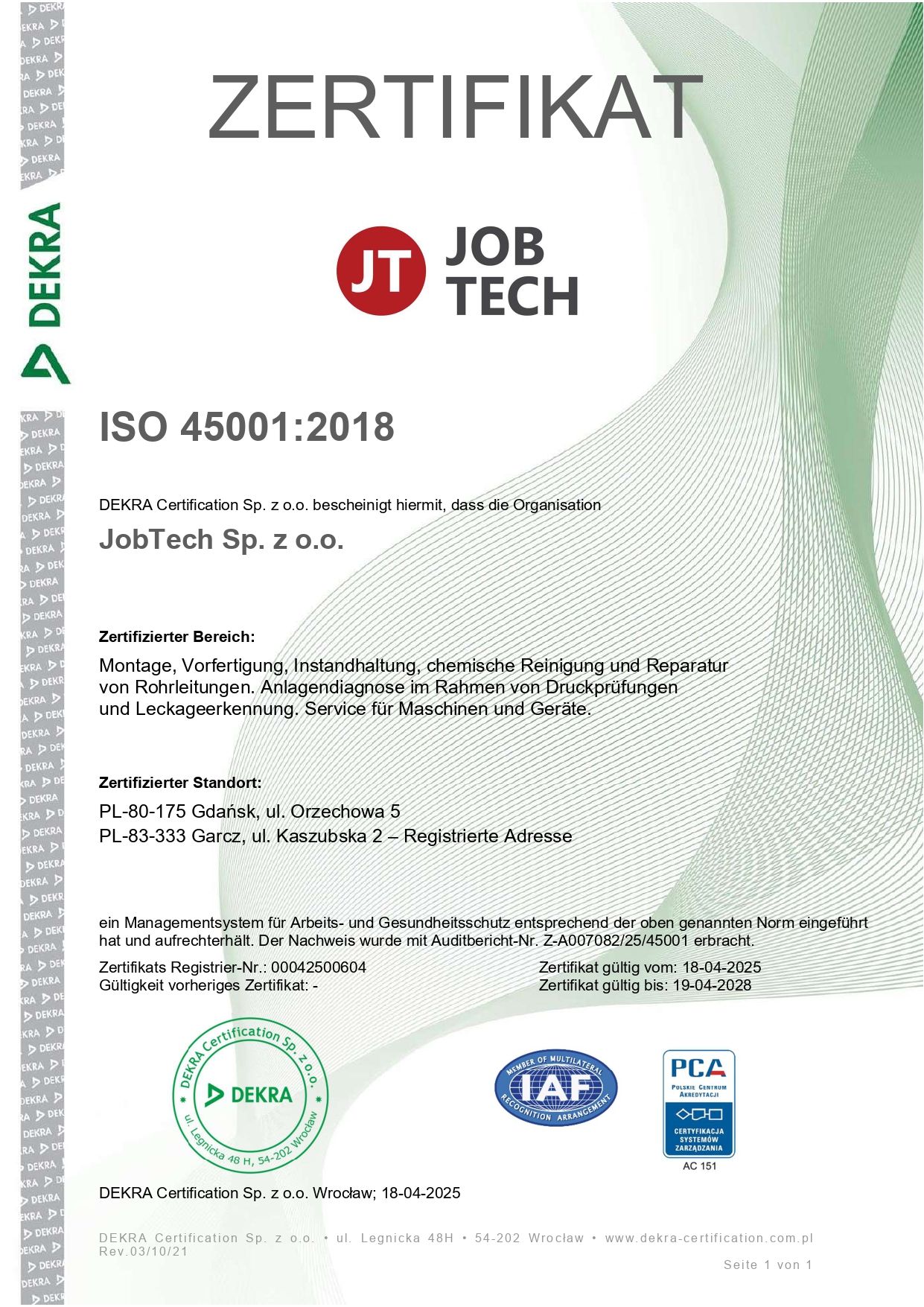 Die Zusammenarbeit verlief reibungslos und ohne Beanstandungen, und Jobtech Sp. z o.o. kann als zuverlässiger und bewährter Geschäftspartner angesehen werden.